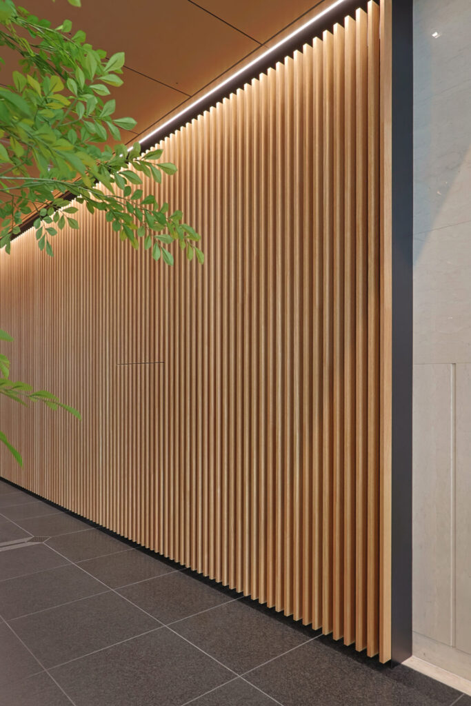 快適で洗練された空間づくりに、壁面ルーバーが上質なアクセントを加えます。